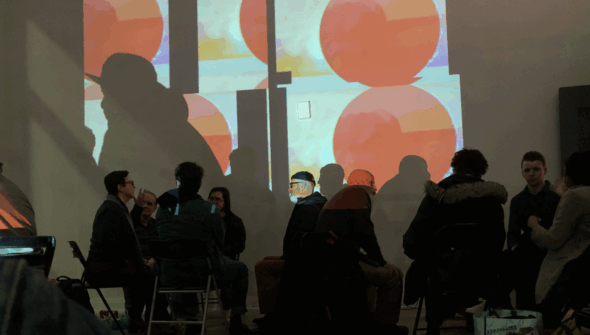 ModBrut, 2017 Performative video installation (projected on panels) with audioDimensions: 42” x 65” x 31”Documentation / Photo ...